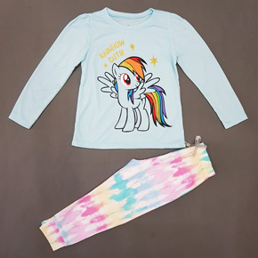 Bộ thun bé gái tay dài in ngựa Pony 7 sắc cầu vồng