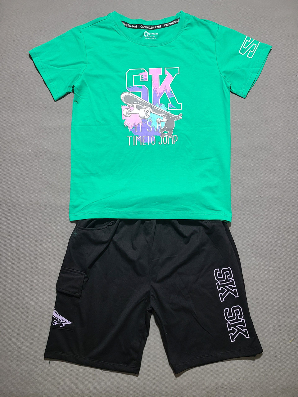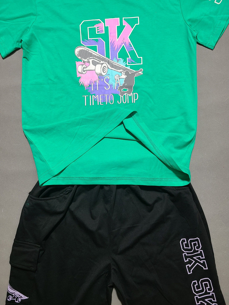 Bộ thun cotton mềm mát in họa tiết thể thao quần túi hộp nam tính cho bé t ... | |