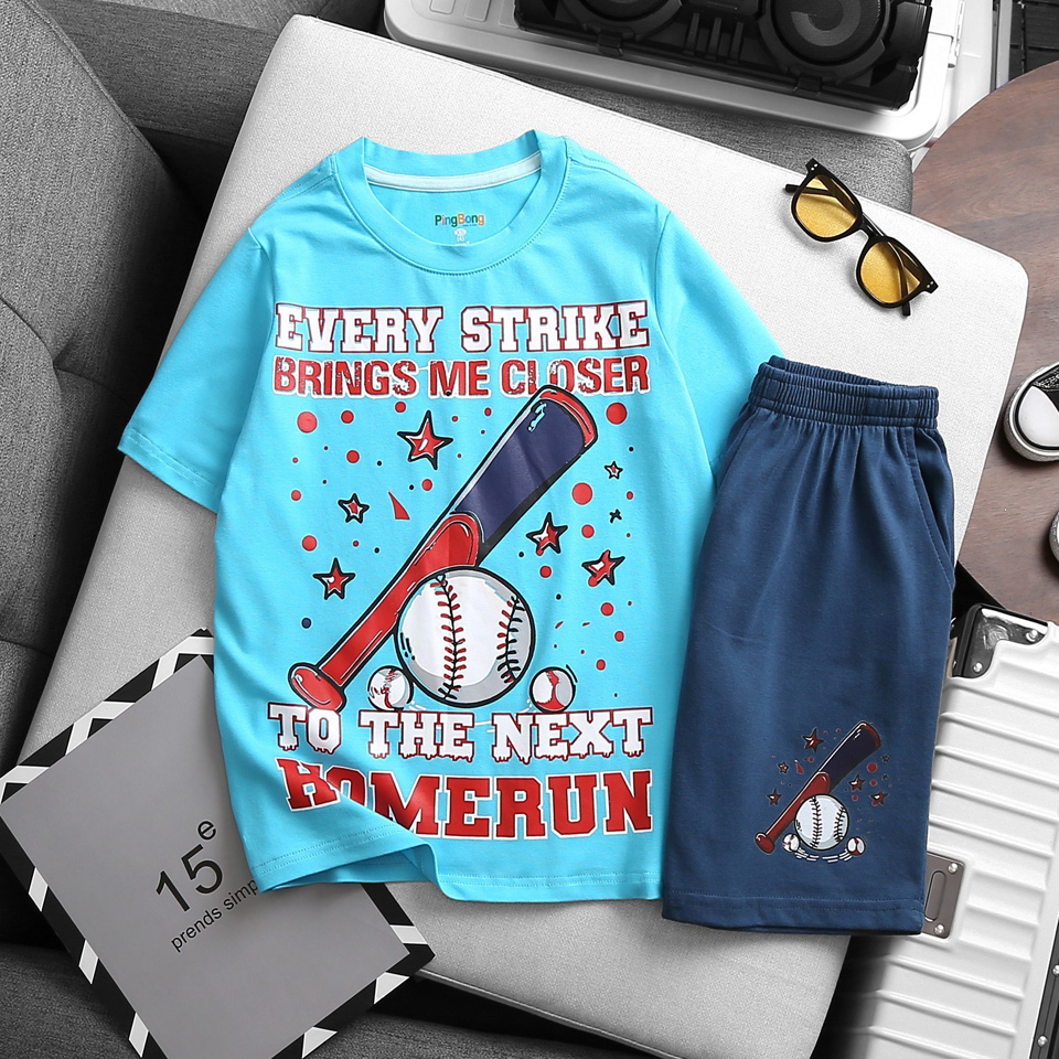 Bộ thun cotton mềm mát in họa tiết thể thao nam tính cho bé trai | |