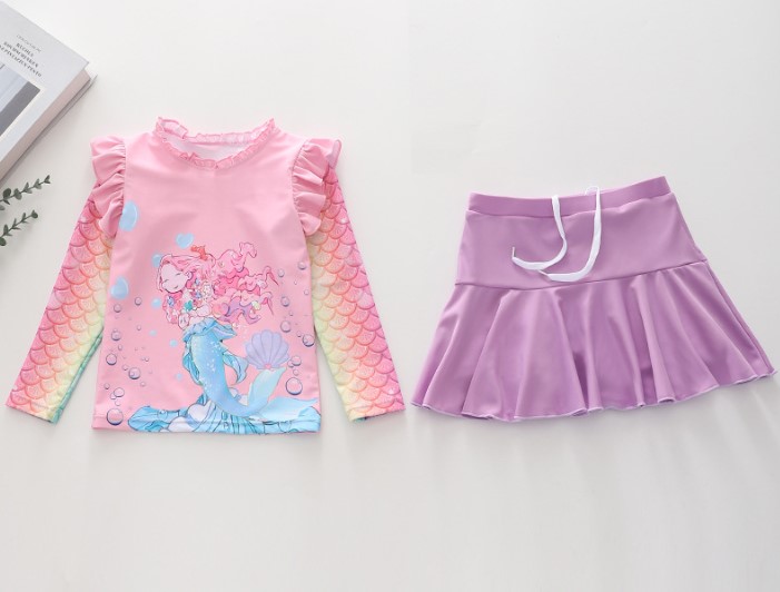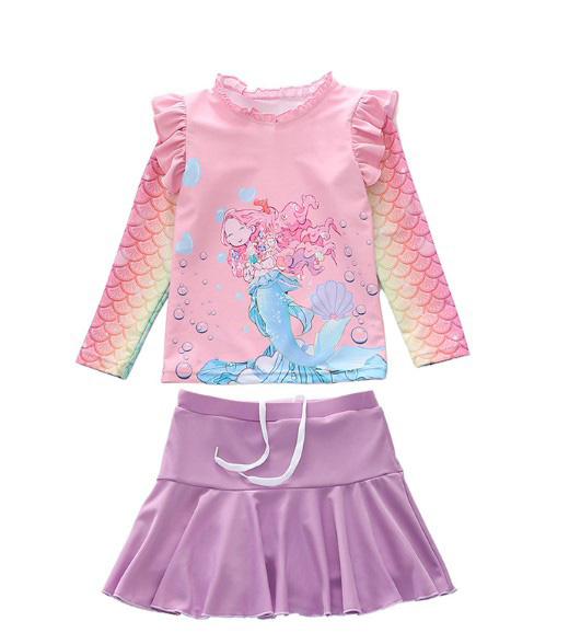 Bộ đồ bơi áo tay dài và quần váy bơi chống nắng nàng tiên cá ariel cho bé gái
