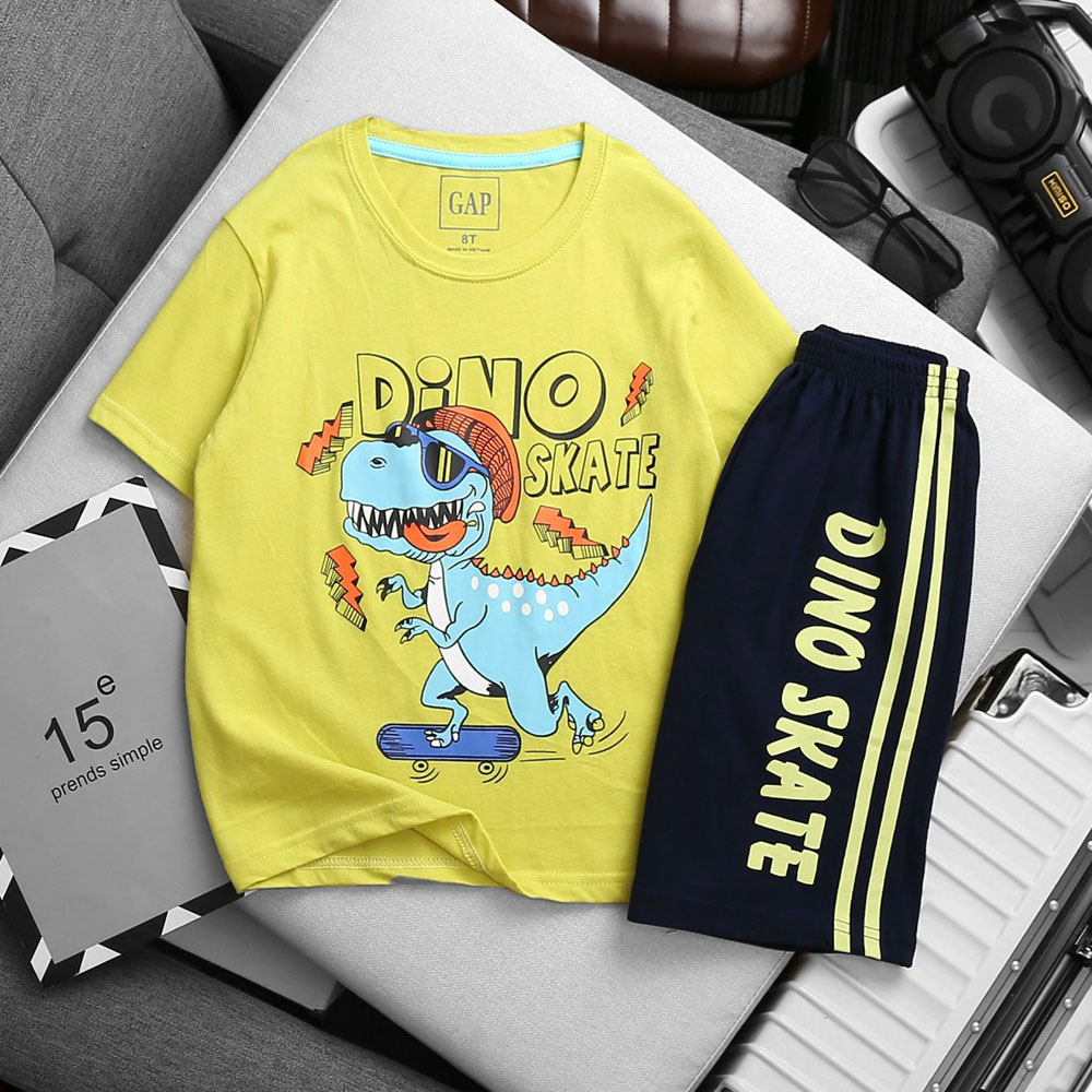 Bộ thun cotton vải xuất mềm mát in khủng long dễ thương cho bé trai