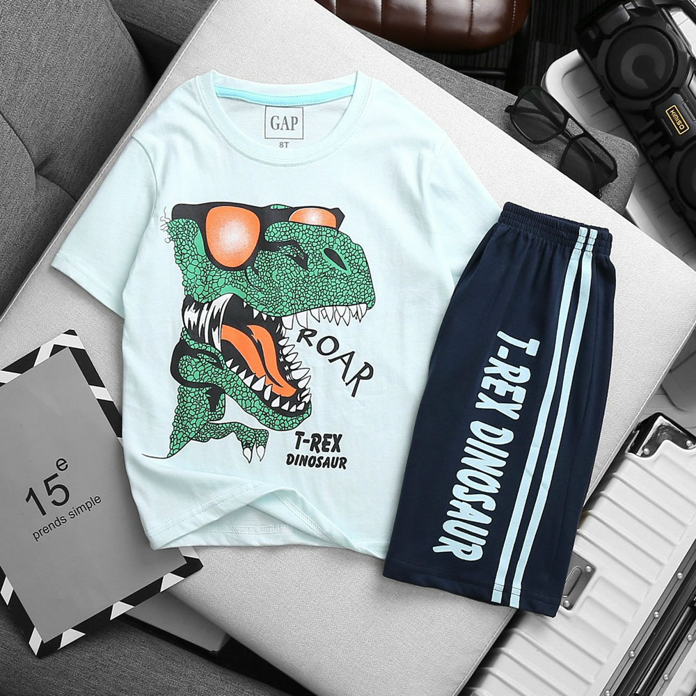Bộ thun cotton vải xuất mềm mát in khủng long dễ thương cho bé trai