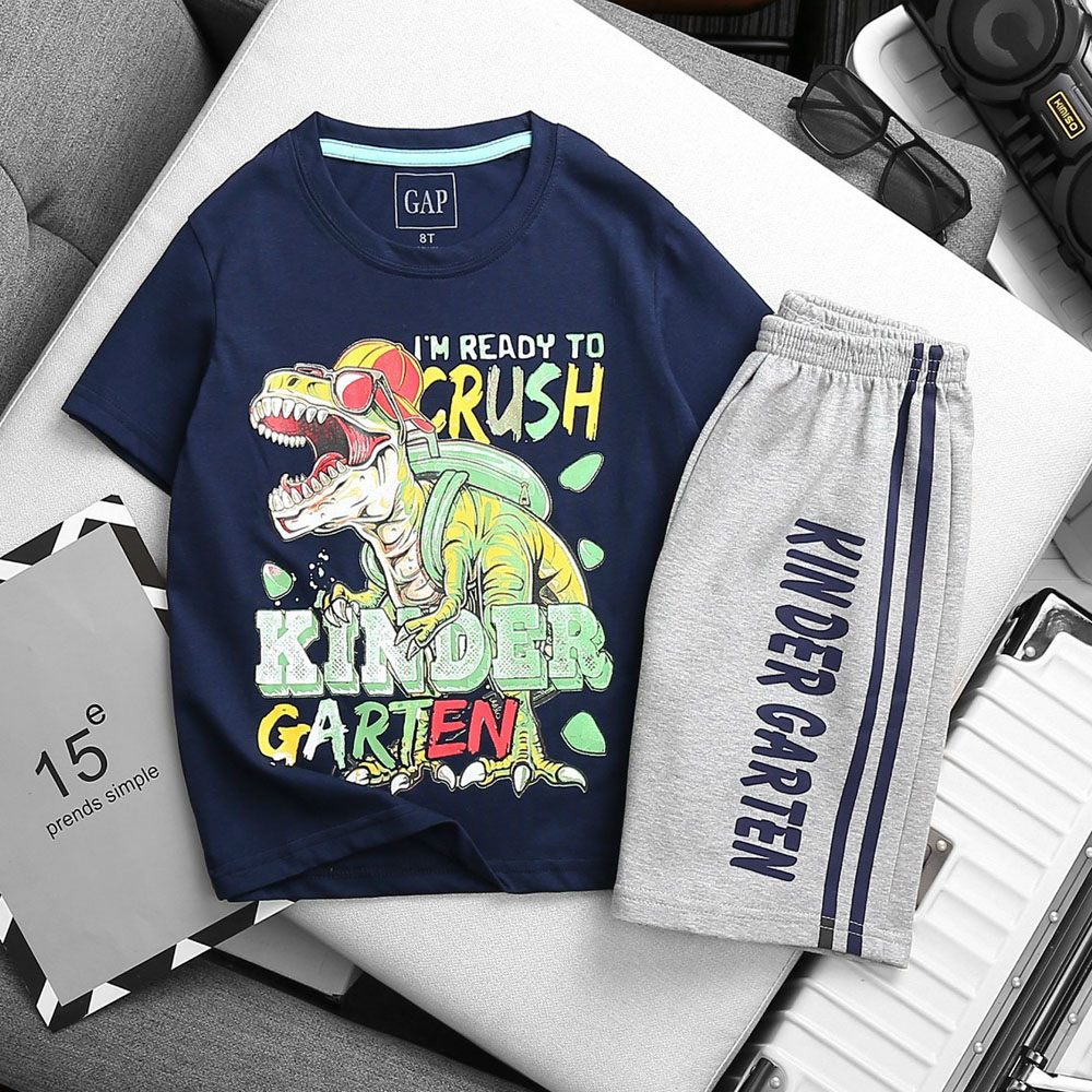 Bộ thun cotton vải xuất mềm mát in khủng long dễ thương cho bé trai