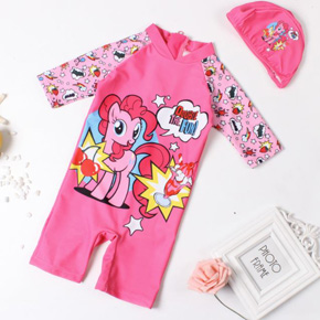 Bộ bơi liền thân tay lỡ in ngựa Pony màu hồng ngọt ngào cho bé gái