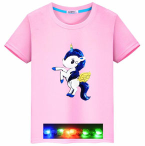 | Áo thun cotton kim sa lật vuốt đổi màu pony unicorn bé gái | |