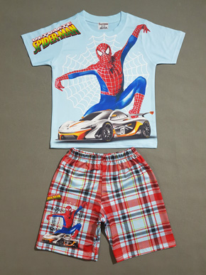 Bộ thun cotton lạnh mát mẻ in hoạt hình người nhện xe hơi