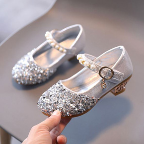 Giày búp bê cao gót ánh bạc lấp lánh cho bé gái