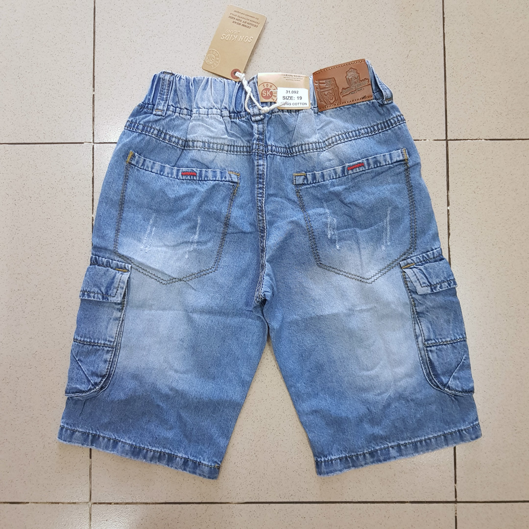 | Quan lửng jean túi hộp kèm phụ kiện cho con trai lớn | |