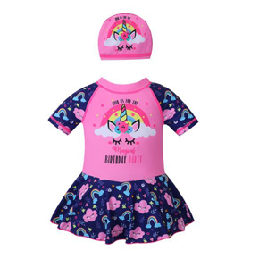 | Đồ bơi liền thân dạng váy xòe kèm nón bơi họa tiết ngựa unicorn và dâu ... | |